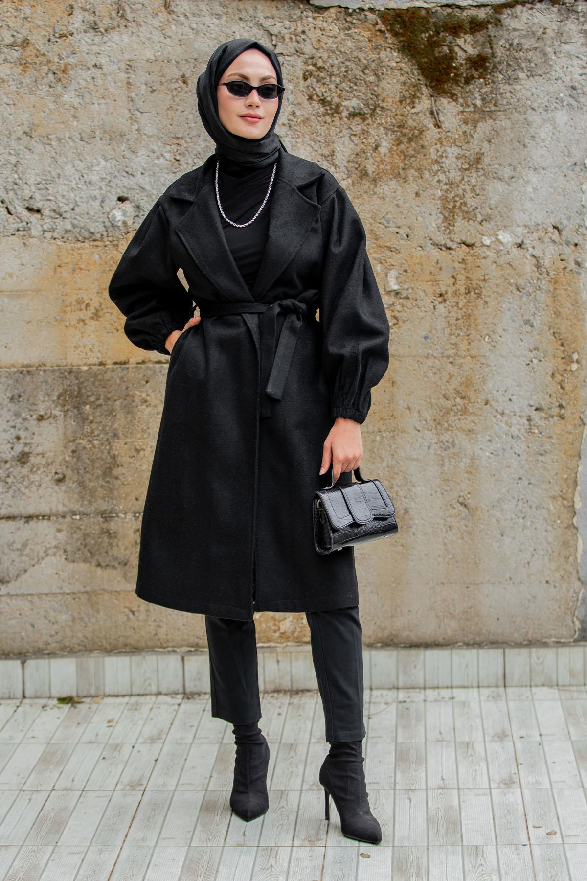 Balon Kol Astarsız Yün Kaşe Kaban-Syh (Tesettür01299)
