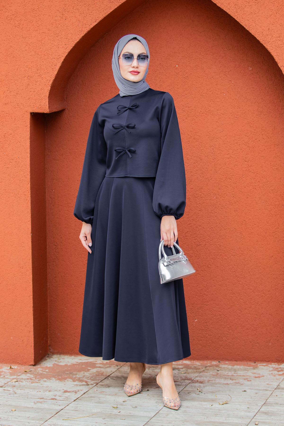 Kumaş;İthal Pufy Dalgıç Kumaştan üretilmiştir.Astarsızdır iç göstermez.Takım olarak satılmaktadır.Bluz Boyu: 48 cm.Etek Boyu: 93 cm.Bluz önde 3 adet fiyonk detayı mevcuttur. Etek ve bluz gizli fermuarlıdır.Bluz kol ağzı lastiklidir.Özel günlerinizde ve günlük kullanımlarınız için oldukça uygun ve rahat bir takımdır.Ürün bedenlidir bedeninizde sipariş verebilirsiniz.30 derecede makinede ağartıcı kullanmadan rahatlıkla yıkama yapabilirsiniz.KESİNLİKLE KURUTMA MAKİNESİNE ATMAYINIZ.Manken ölçüleri Boy: 170 Kilo: 50 kilo 36 beden ürün giymiştir."Profesyonel ekipmanlarla gün ışığında yapılan çekimlerimiz de ton farkı oluşabilmektedir."