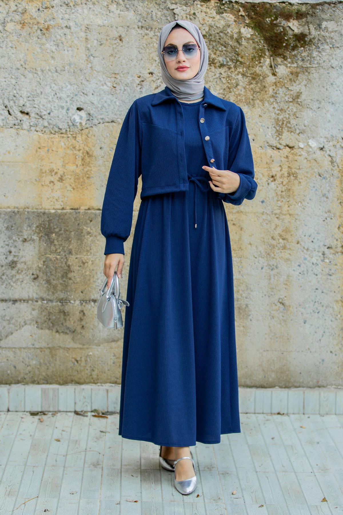 Missa Fitilli Ceket Jile Elbiseli Takım-Laci (Tesettür01298)