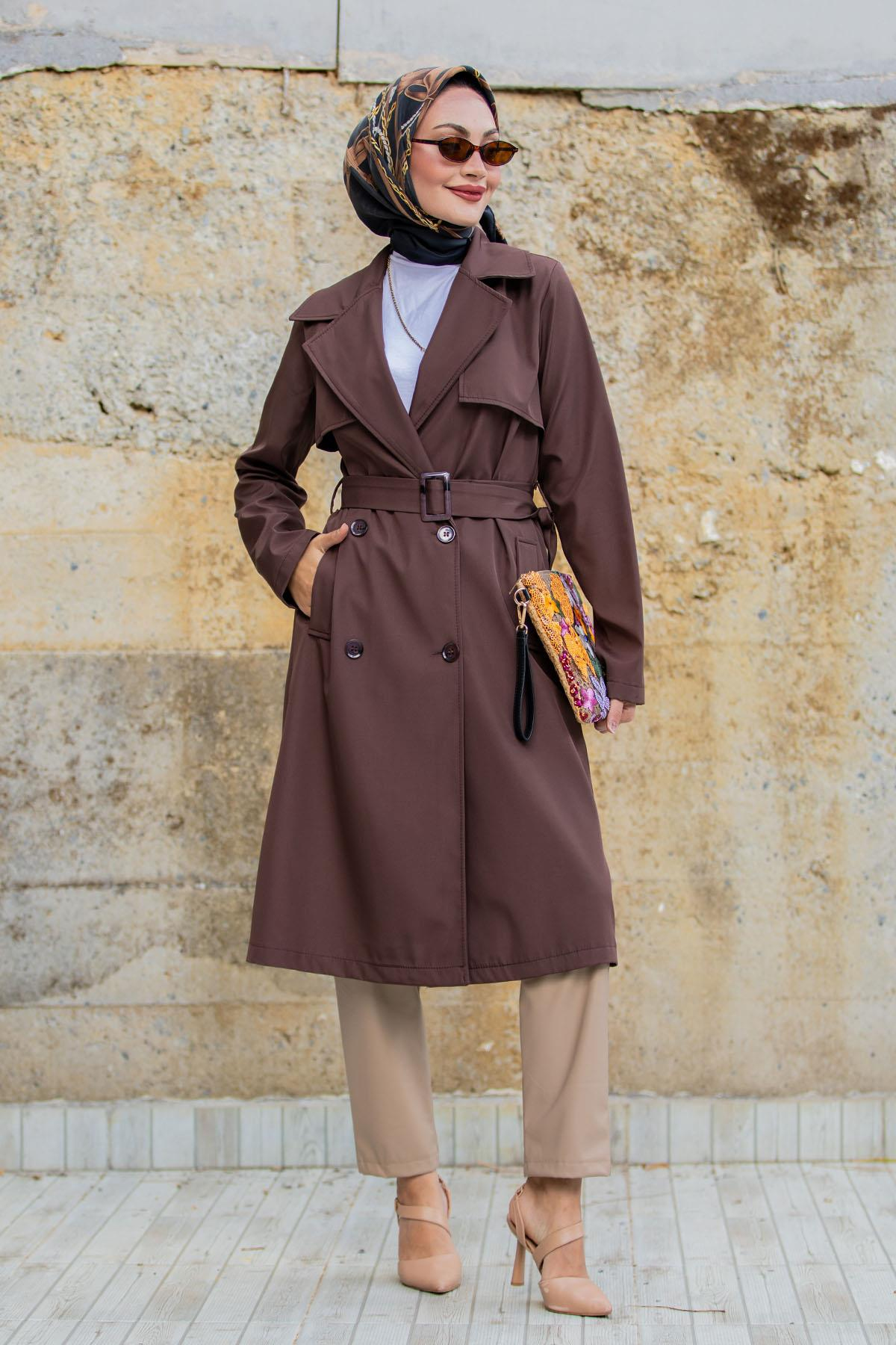 Rinny Bondik Trençkot-Kahve (Tesettür01291)