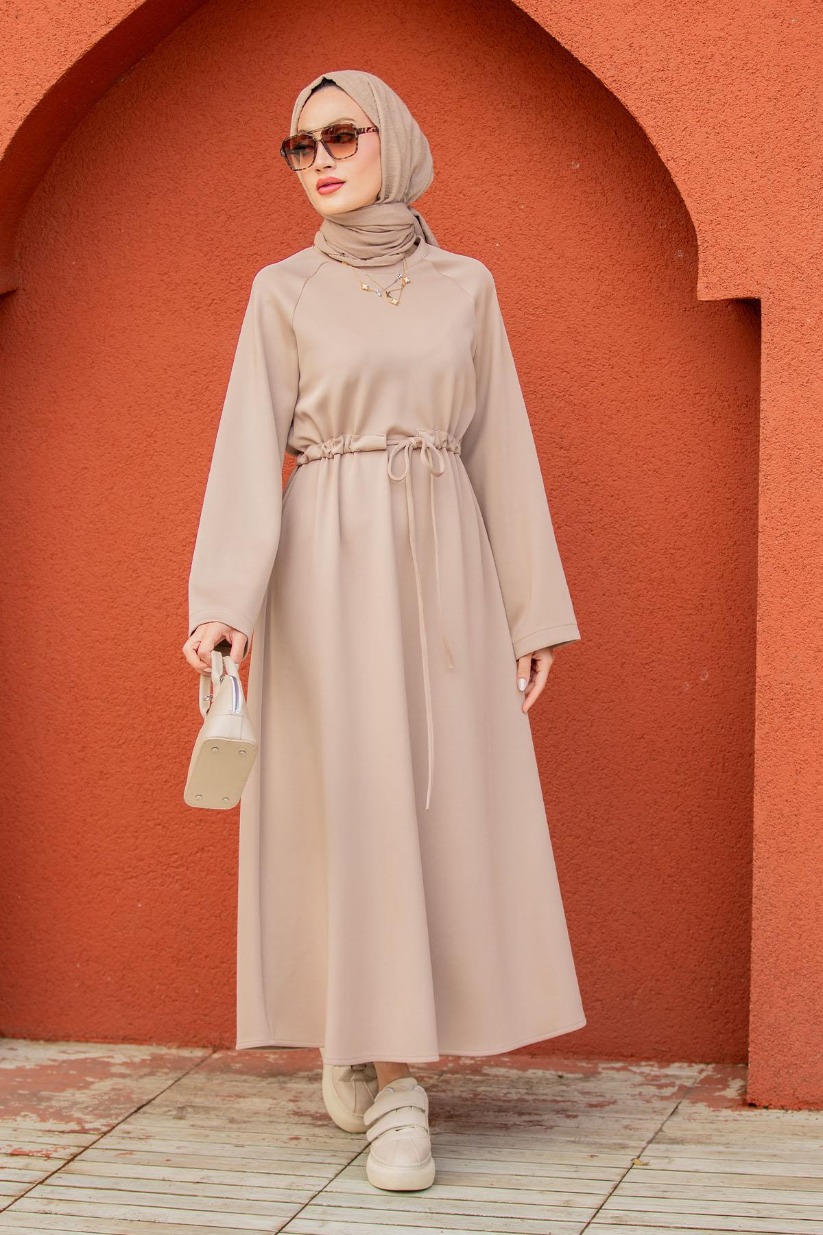 Royal Pufy Dalgıç Relax Elbise-Bej (Tesettür01305)