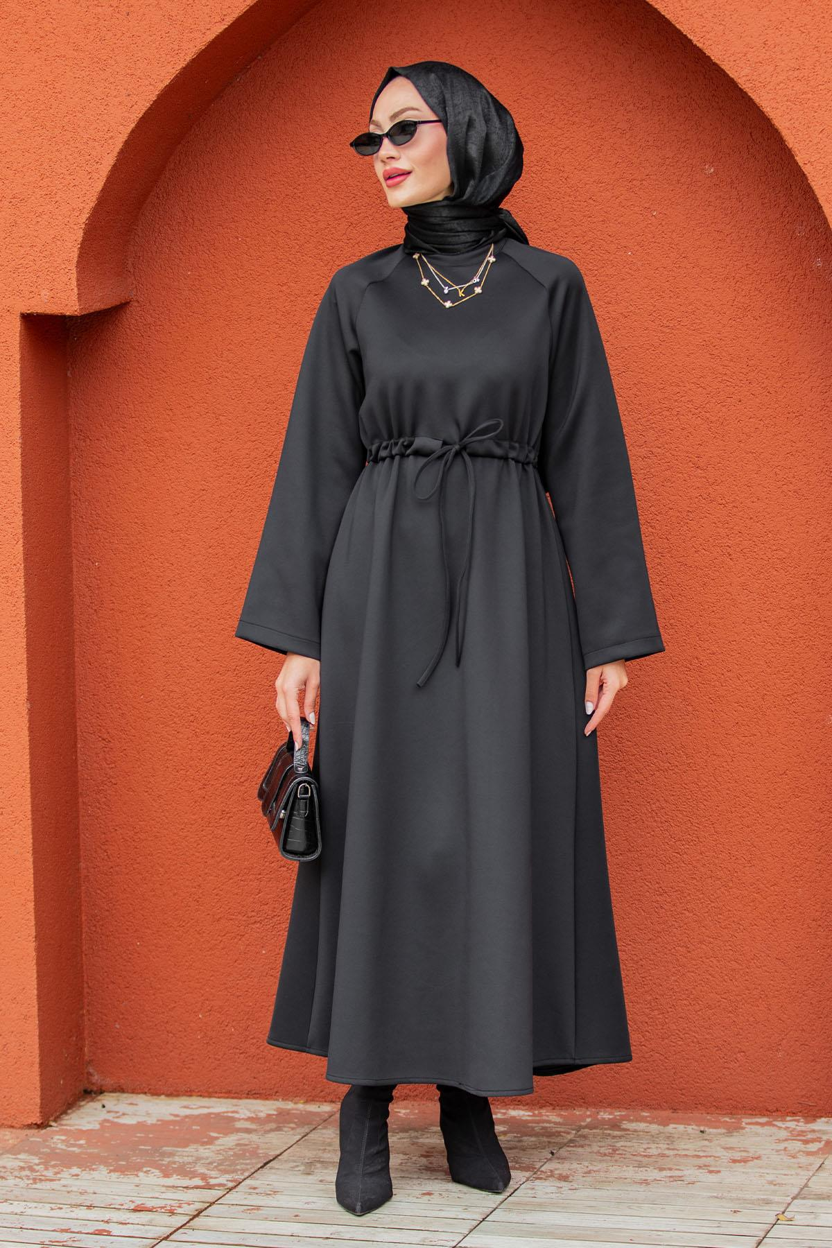 Royal Pufy Dalgıç Relax Elbise-Siyah (Tesettür01305)