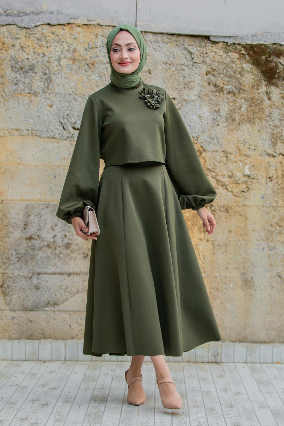 İthal Kalitede Orjinal Pufy Dalgıç Kumaştan üretilmiştir.Üst Bluz Boy:43 cm / Etek Boyu: 95 cm - balon kol detaylıdır.Sol Ön Yakada 1 adet 3 çiçekli broş detayı mevcut ve bedene dikilidir.Etek beli korsajlı ve yan gizli fermuarlıdır. Etek 6 parçalı kloş kesimdir. Hafif parlak yapısıyla özel günleriniz içinde oldukça uygun bir elbisedir.Ürün bedenlidir bedeninizde sipariş verebilirsiniz.KESİNLİKLE KURUTMA MAKİNESİNE ATMAYINIZ.Manken ölçüleri Boy: 170 Kilo: 50 kilo 36 beden ürün giymiştir."Profesyonel ekipmanlarla gün ışığında yapılan çekimlerimiz de ton farkı oluşabilmektedir."